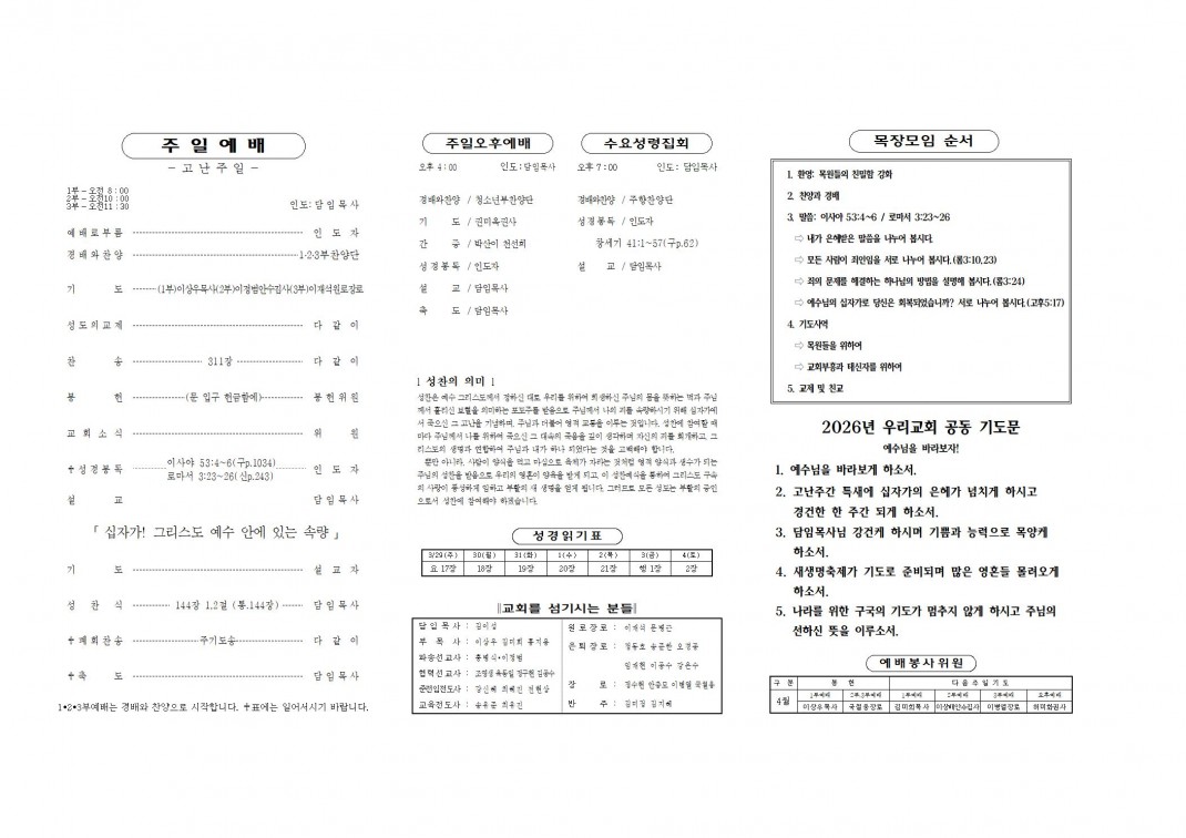 2026. 3. 29 주보 페이지 정보 작성자최고관리자 댓글 0건 조회 195회 작성일 26-03-27 20:34 본문 . 첨부파일 20260329.pdf (345.0K) 1회 다운로드 | DATE : 2026-03-27 20:34:16 목록 이전글2026. 4. 5 주보 26.04.03 다음글2026. 3. 22 주보 26.03.20 댓글목록 댓글목록 등록된 댓글이 없습니다.