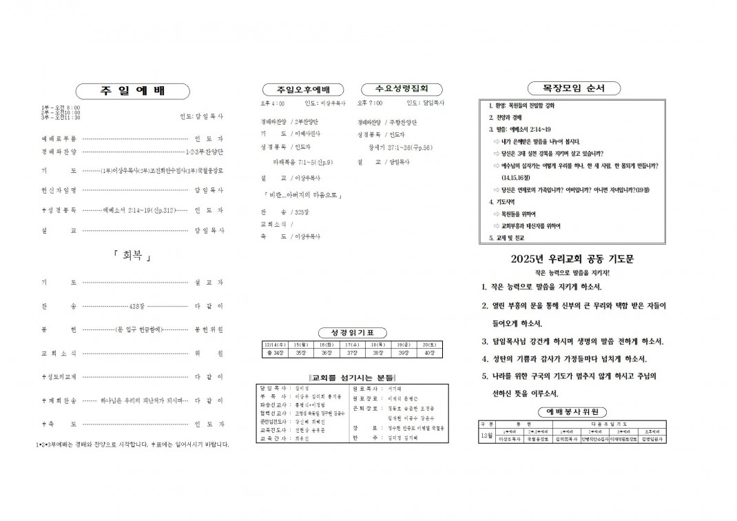 2025. 12. 14 주보 페이지 정보 작성자최고관리자 댓글 0건 조회 223회 작성일 25-12-12 21:10 본문 . 첨부파일 20251214.pdf (342.2K) 4회 다운로드 | DATE : 2025-12-12 21:10:55 목록 이전글2025. 12. 21 주보 25.12.19 다음글2025. 12. 7 주보 25.12.05 댓글목록 댓글목록 등록된 댓글이 없습니다.